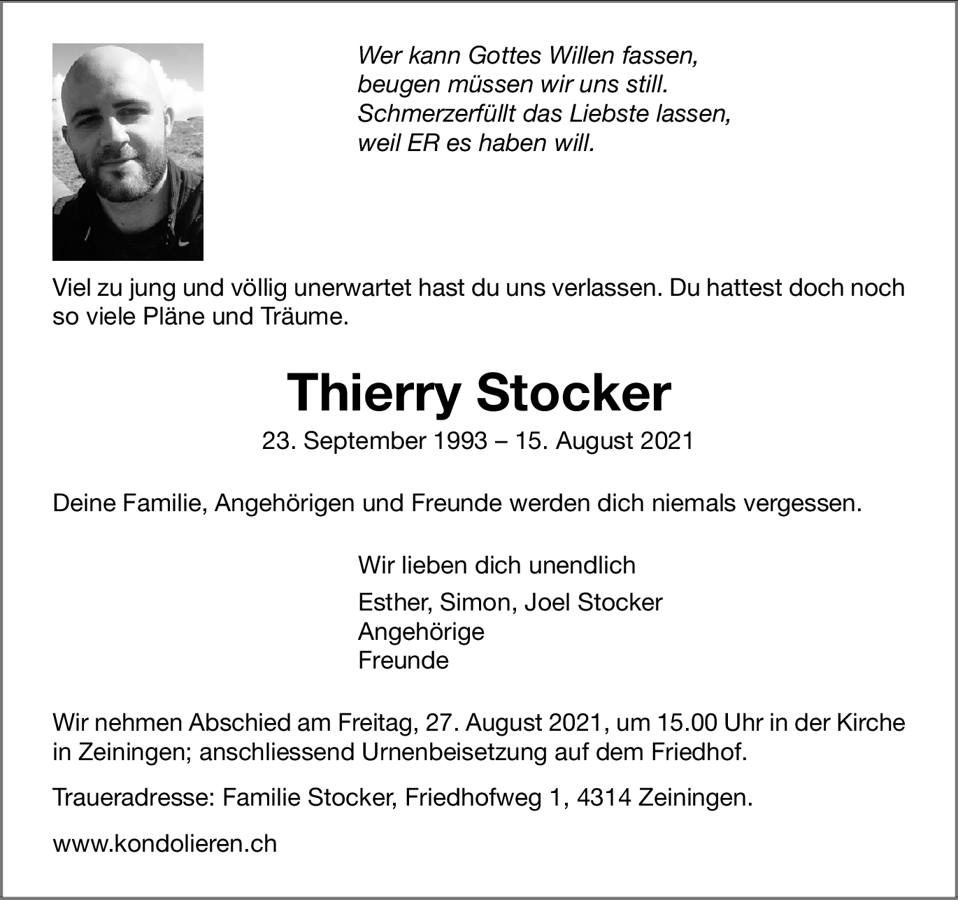 Keine Kondolenzen für den Moment.