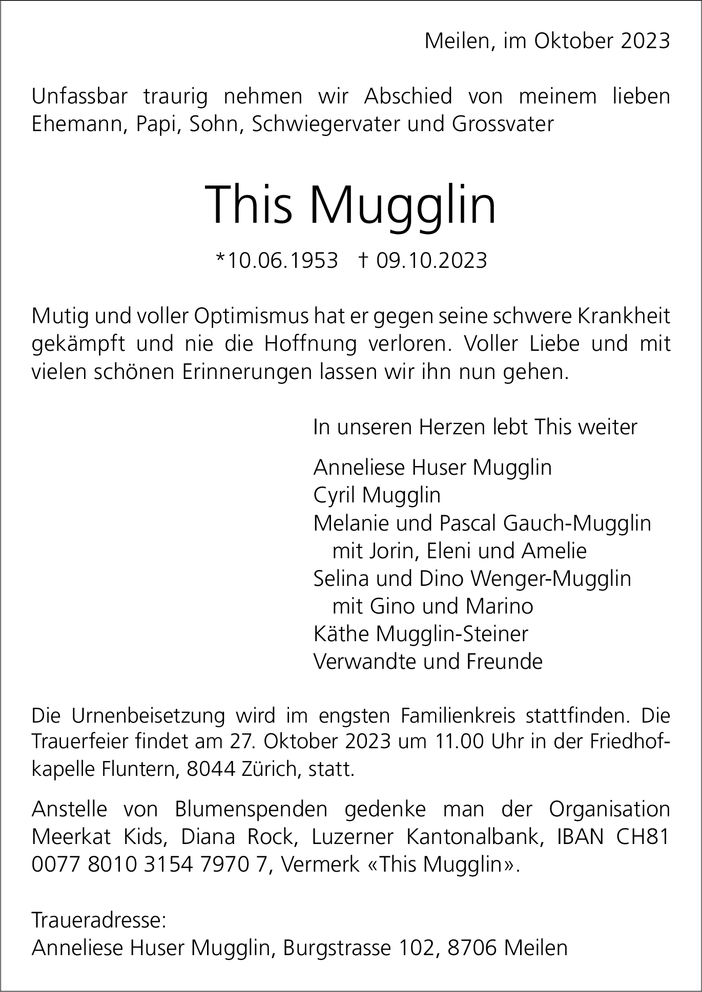 Möchten Sie über neue Todesanzeigen und Kondolenzen für diesen Verstorbenen informiert werden?