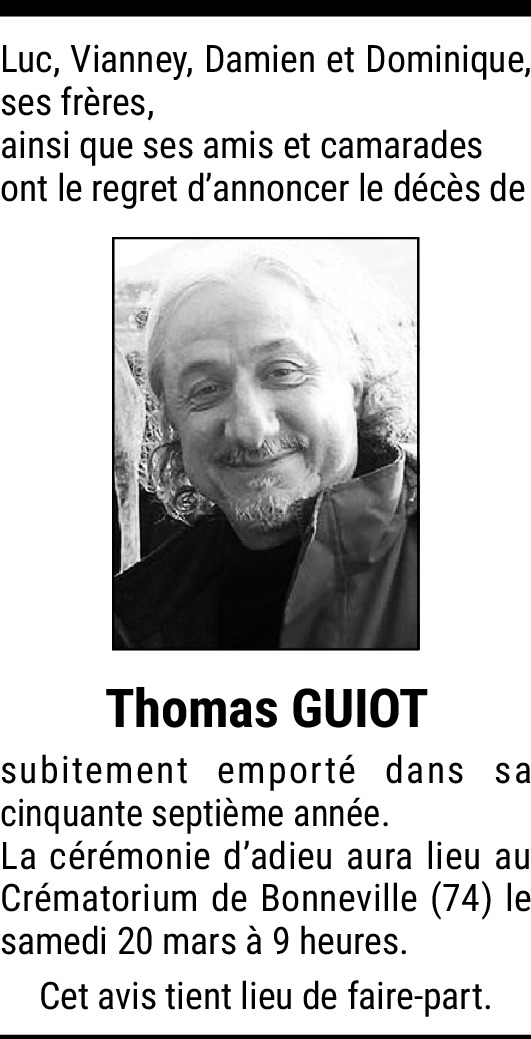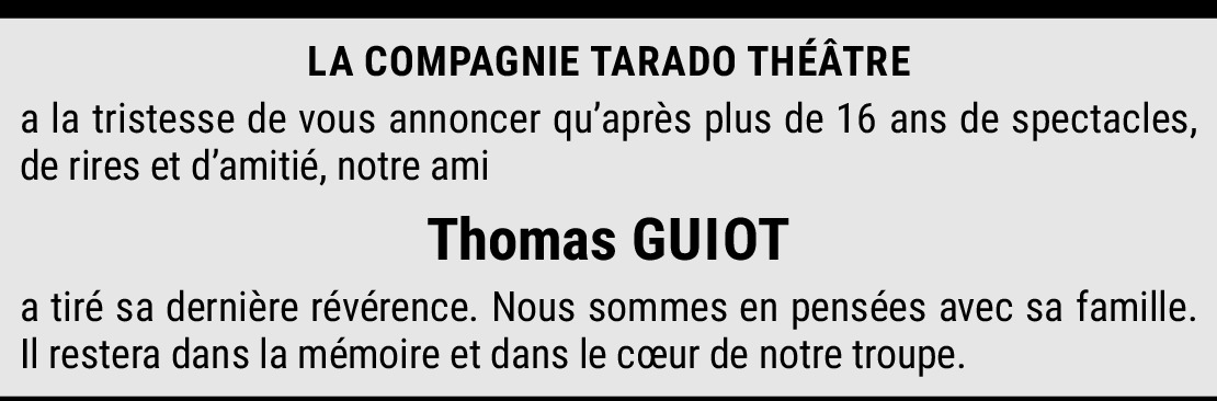 C'est avec une très grande tristesse que nous avons appris le décès subit de notre ami Thomas.