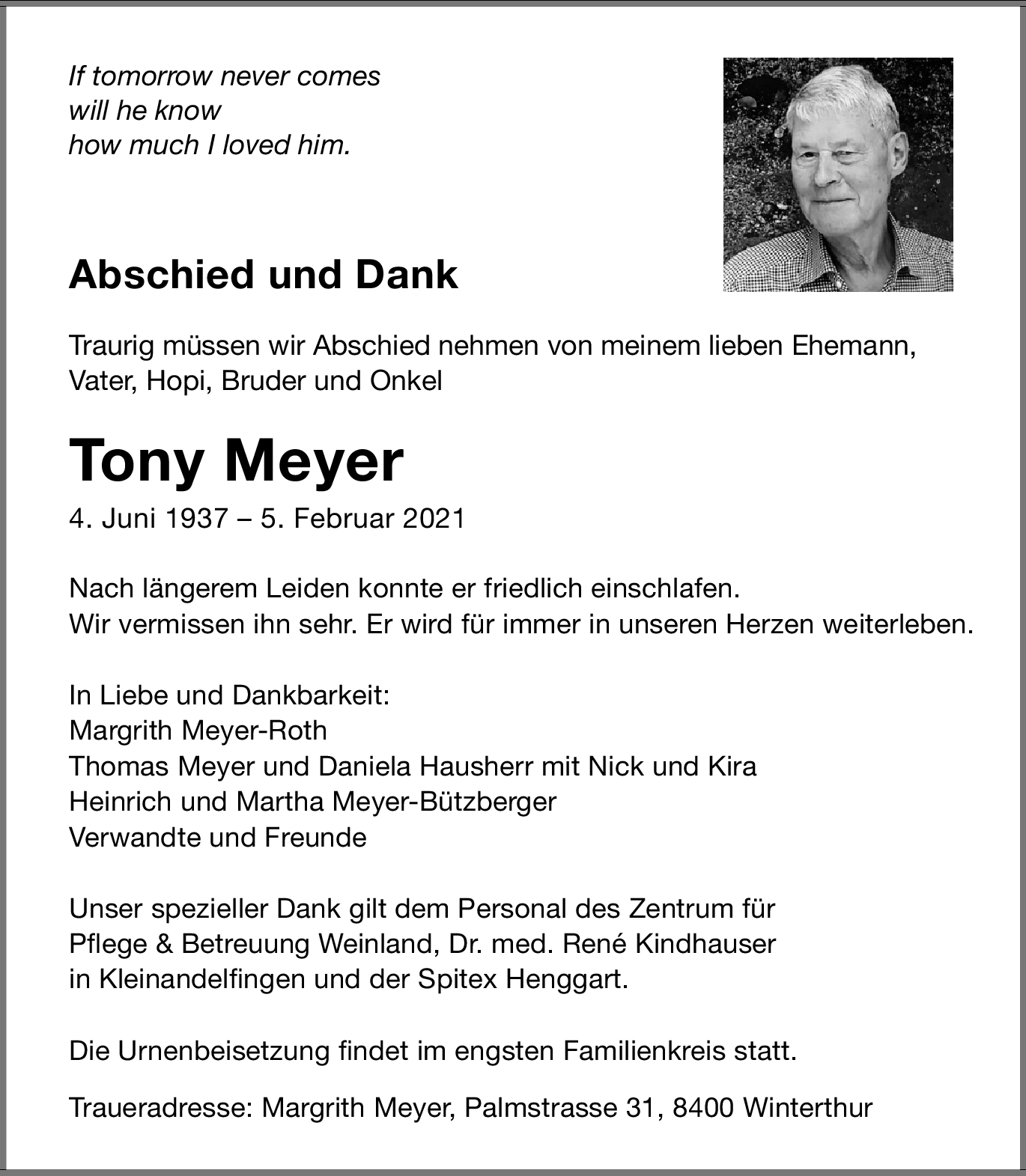 Möchten Sie über neue Todesanzeigen und Kondolenzen für diesen Verstorbenen informiert werden?
