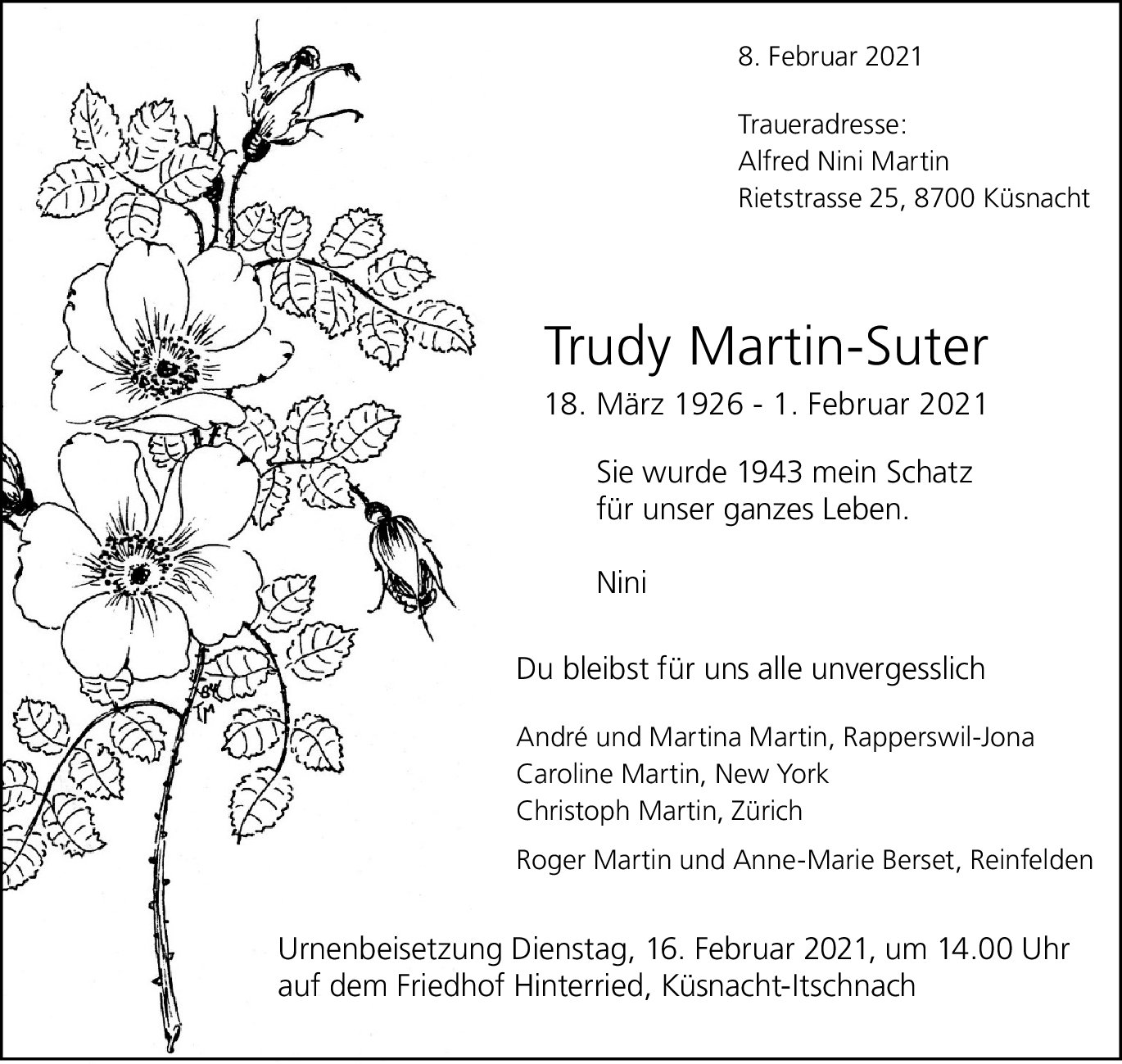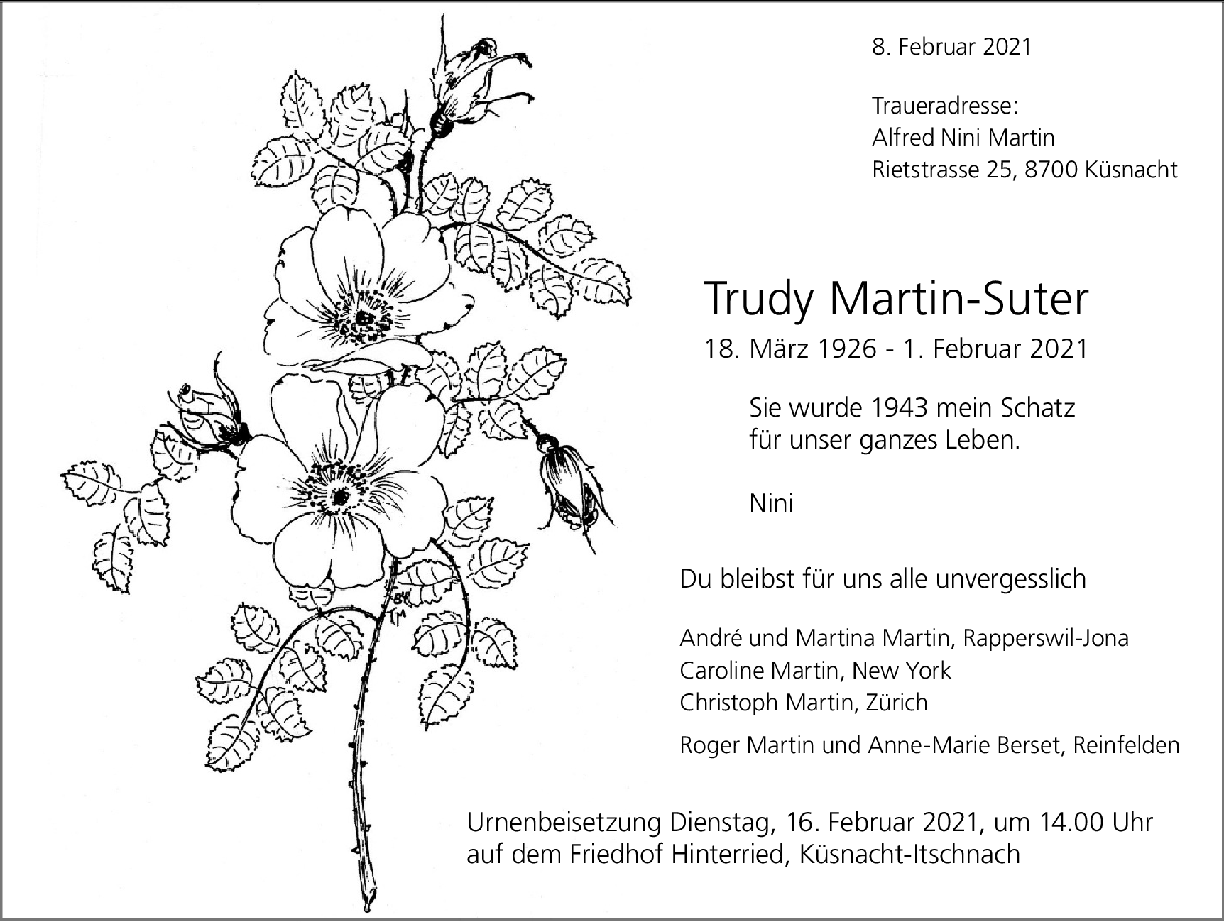 Möchten Sie über neue Todesanzeigen und Kondolenzen für diesen Verstorbenen informiert werden?