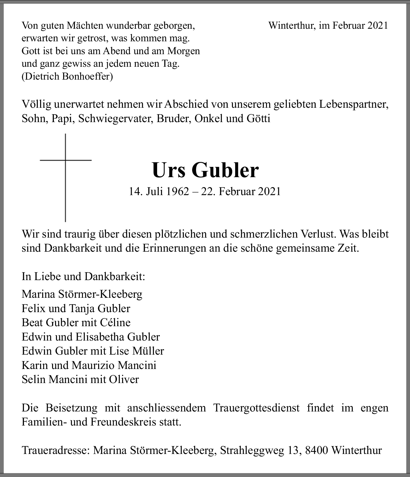 Möchten Sie über neue Todesanzeigen und Kondolenzen für diesen Verstorbenen informiert werden?
