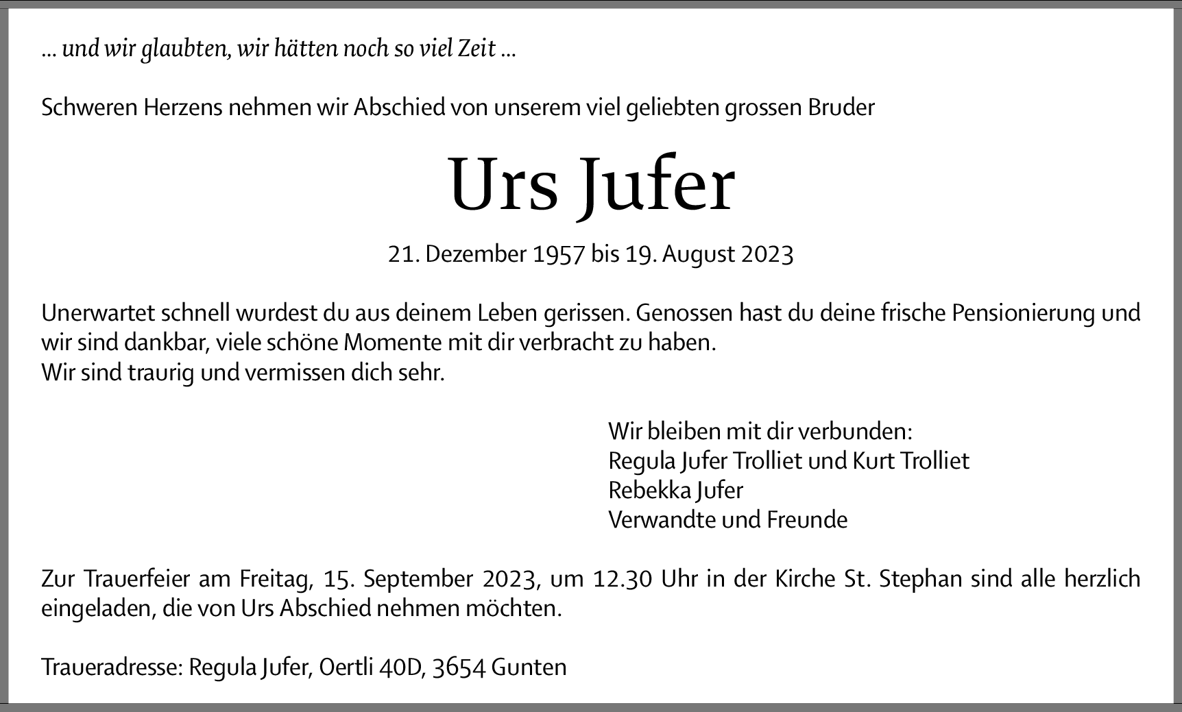 Möchten Sie über neue Todesanzeigen und Kondolenzen für diesen Verstorbenen informiert werden?