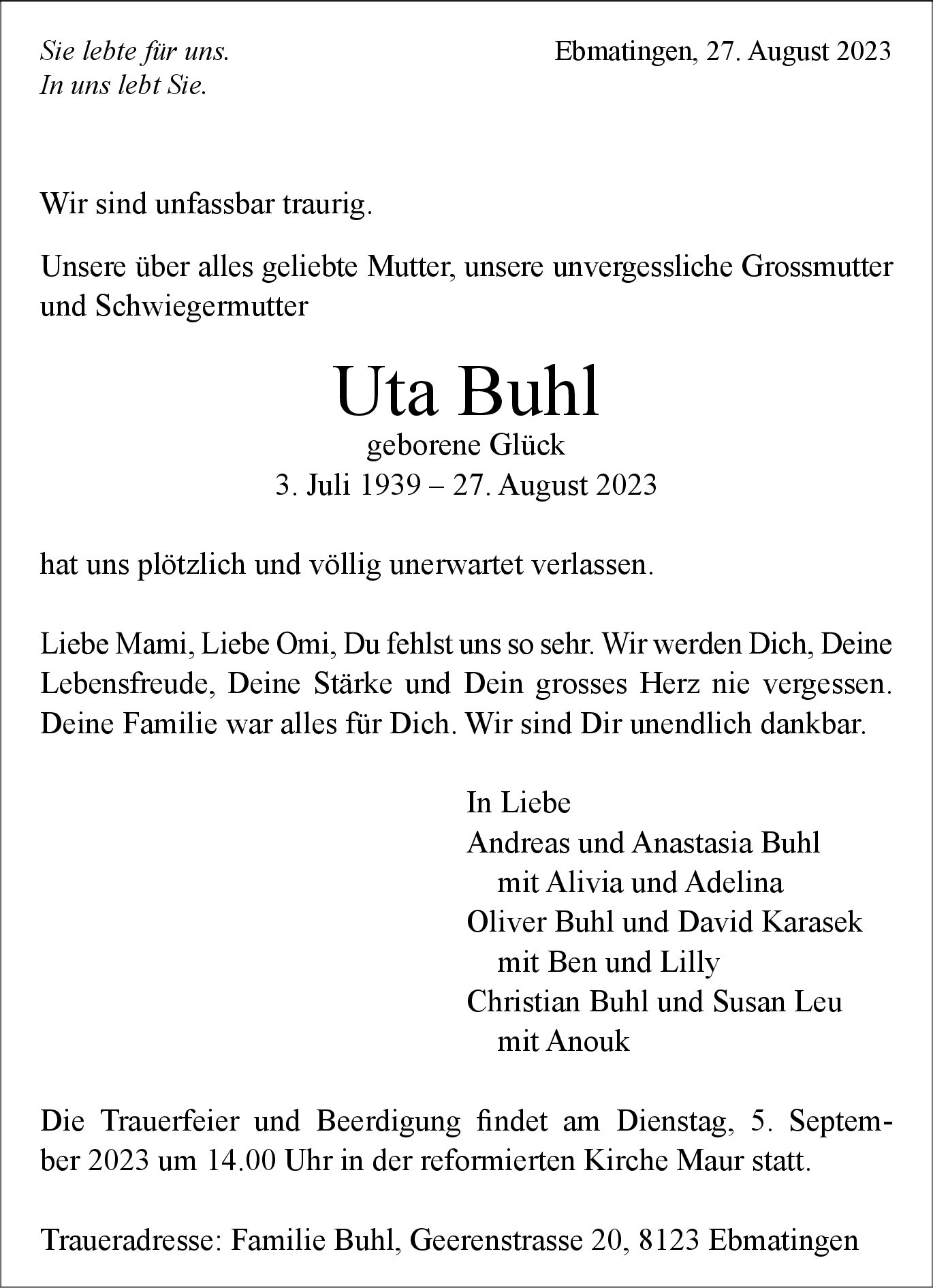 Möchten Sie über neue Todesanzeigen und Kondolenzen für diesen Verstorbenen informiert werden?