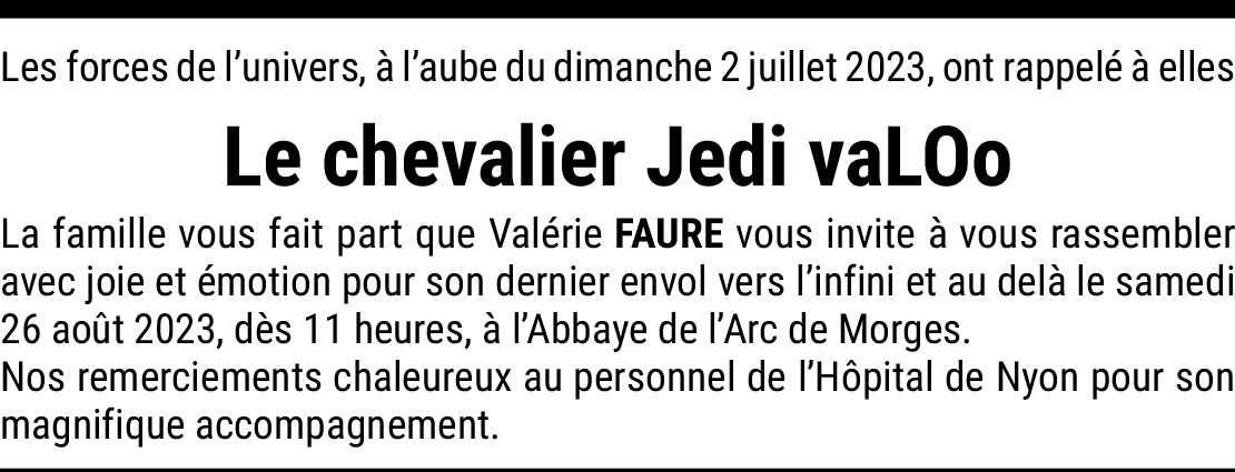Chère Valou, je ne t'ai pas vue depuis tellement longtemps. Tu resteras toujours dans mon cœur, dans mes souvenirs, cette jolie fille dont j'admirais tellement l'indépendance et le charisme et dont le rire faisait ressortir les fossettes. J'ai allumé une bougie pour toi, pour que tu prennes ton envol et ailles vers la lumière. Je ne serai pas là le 26 août mais je serai en pensées avec tous tes proches qui te rendront hommage et qui célébreront ton départ dans l'émotion...
