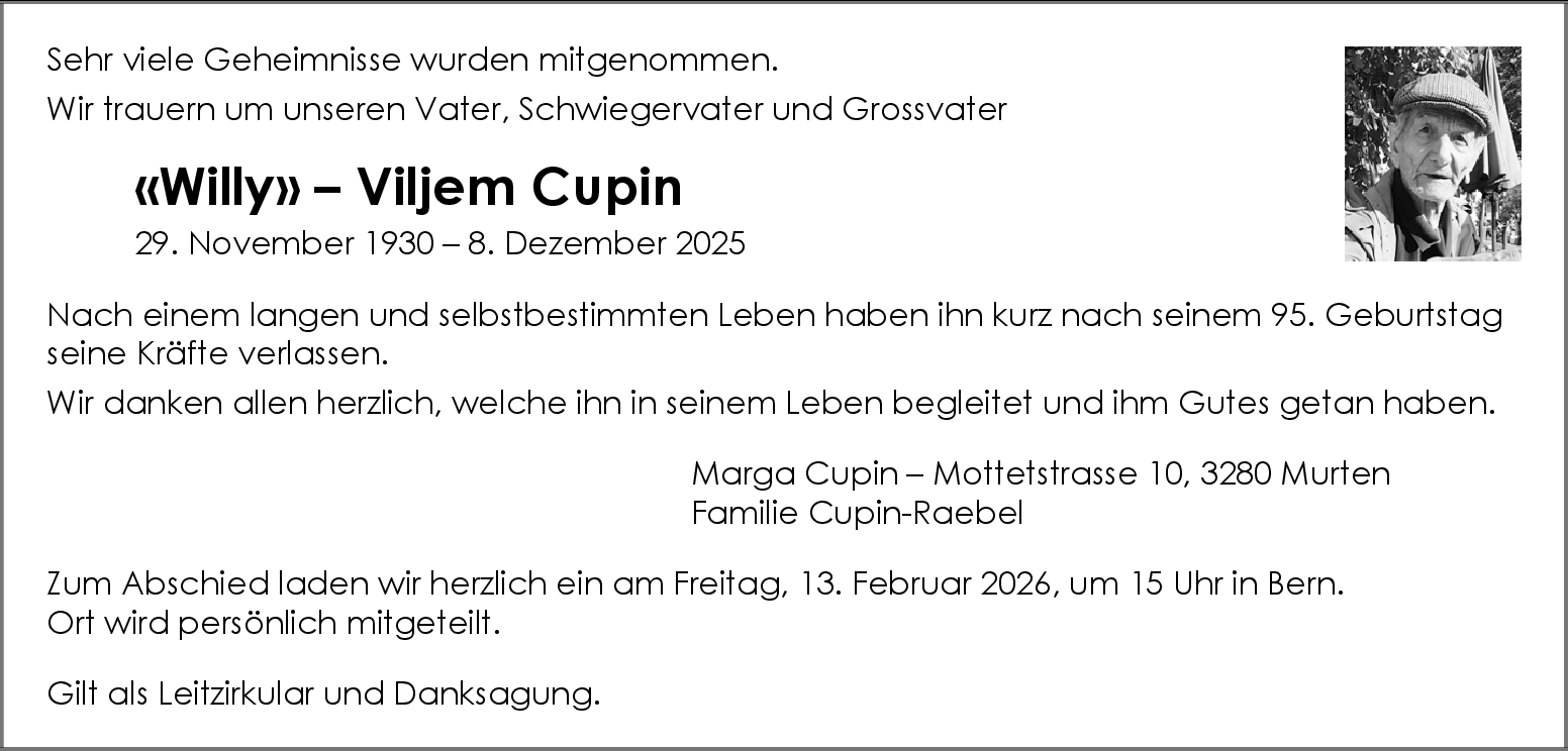 Möchten Sie über neue Todesanzeigen und Kondolenzen für diesen Verstorbenen informiert werden?