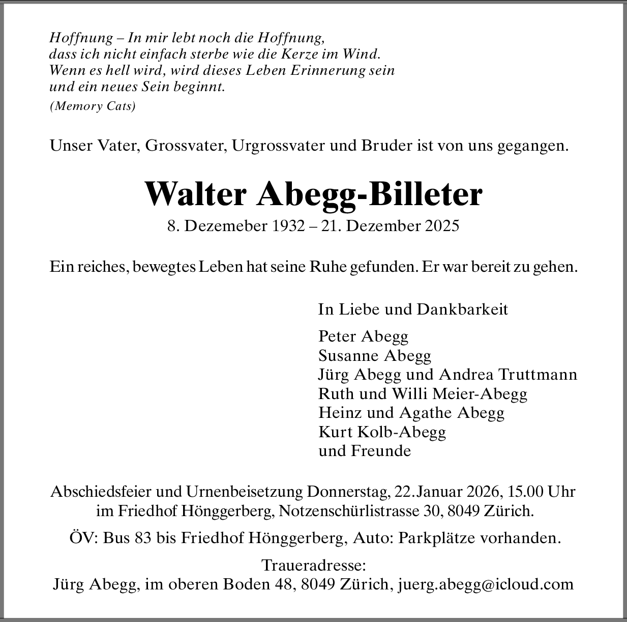 Möchten Sie über neue Todesanzeigen und Kondolenzen für diesen Verstorbenen informiert werden?