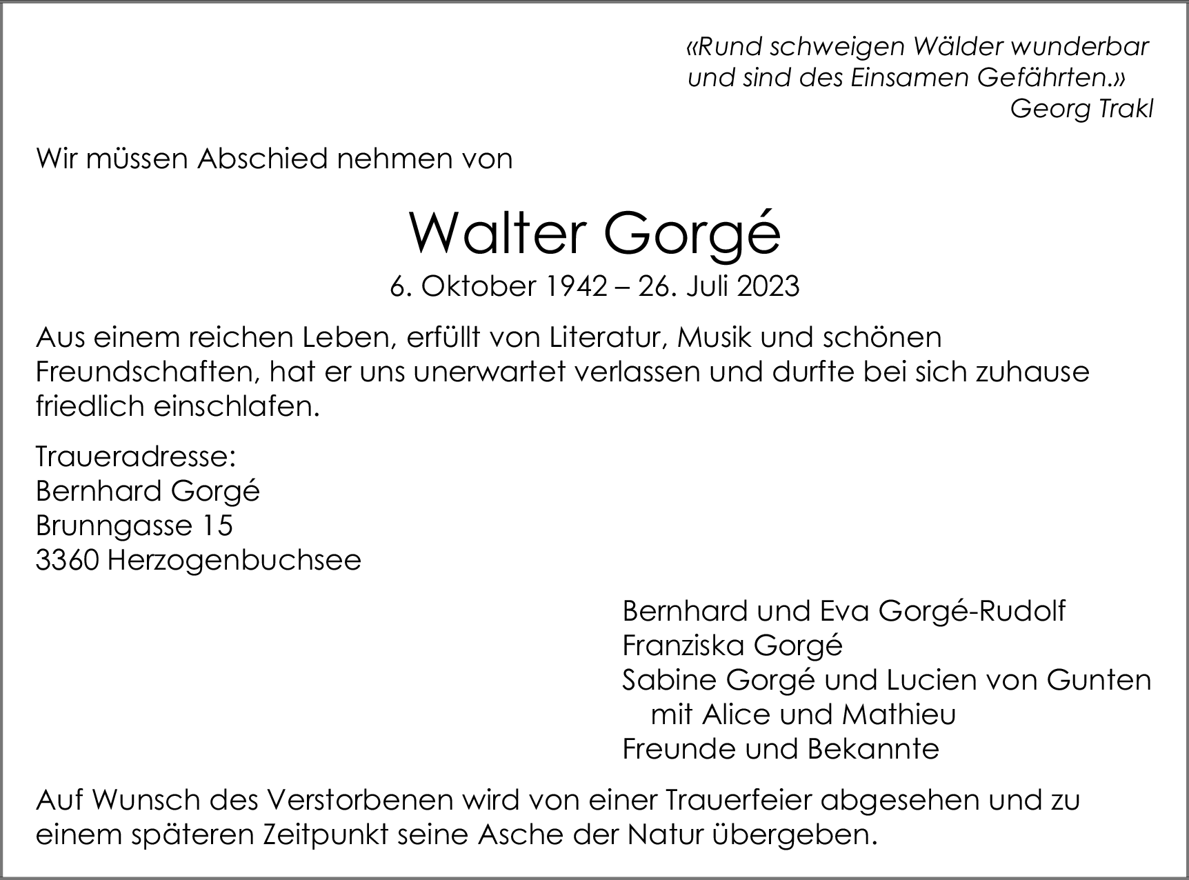 Möchten Sie über neue Todesanzeigen und Kondolenzen für diesen Verstorbenen informiert werden?