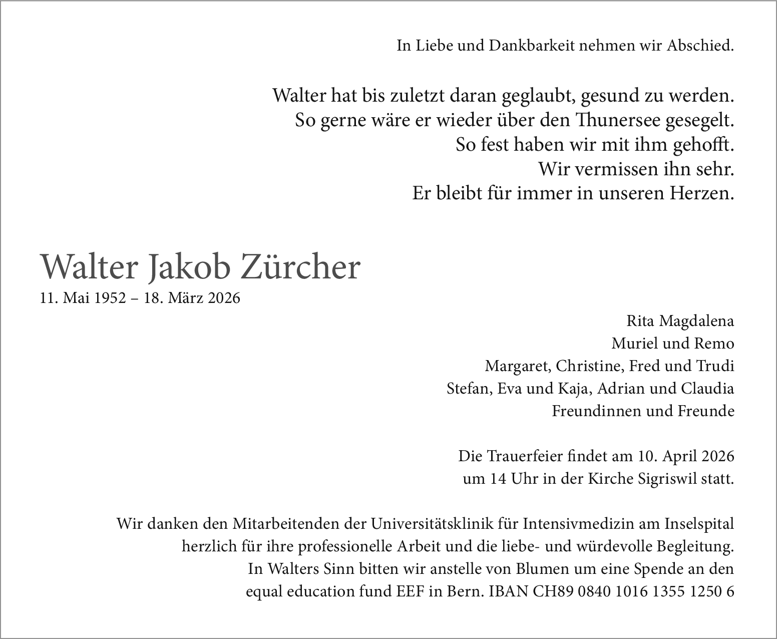Möchten Sie über neue Todesanzeigen und Kondolenzen für diesen Verstorbenen informiert werden?