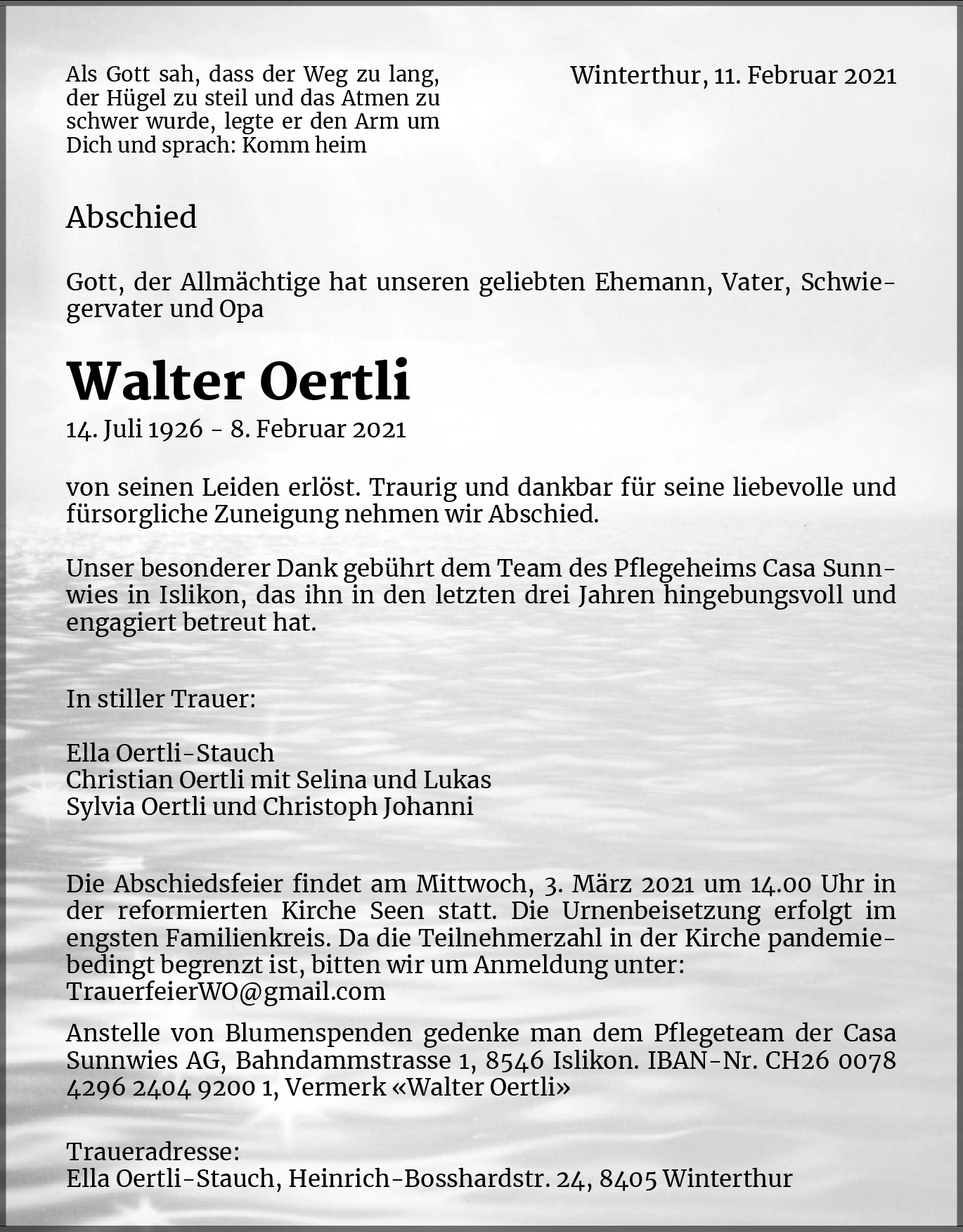 Möchten Sie über neue Todesanzeigen und Kondolenzen für diesen Verstorbenen informiert werden?