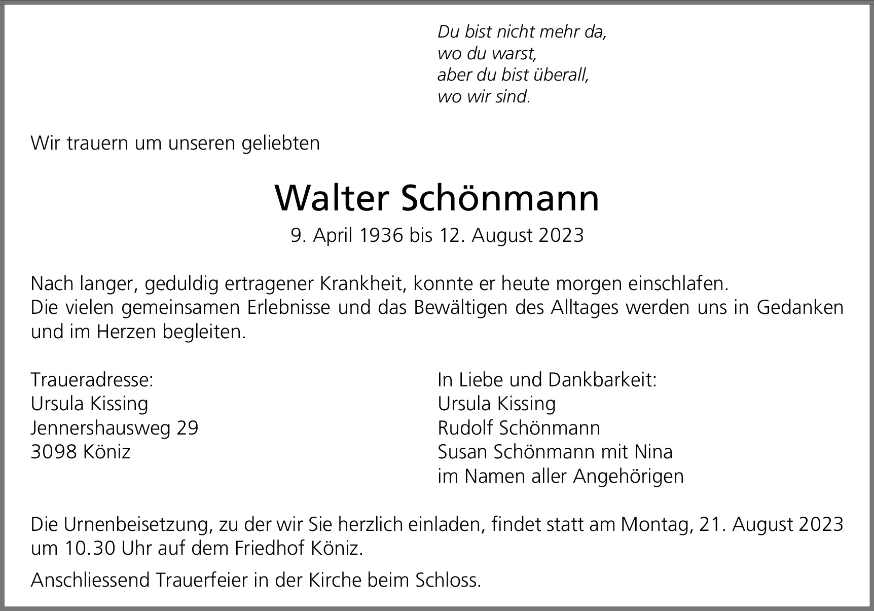 Möchten Sie über neue Todesanzeigen und Kondolenzen für diesen Verstorbenen informiert werden?