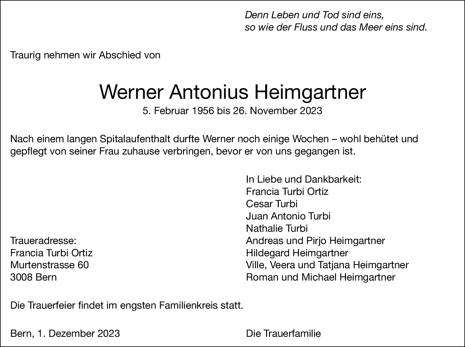 Möchten Sie über neue Todesanzeigen und Kondolenzen für diesen Verstorbenen informiert werden?