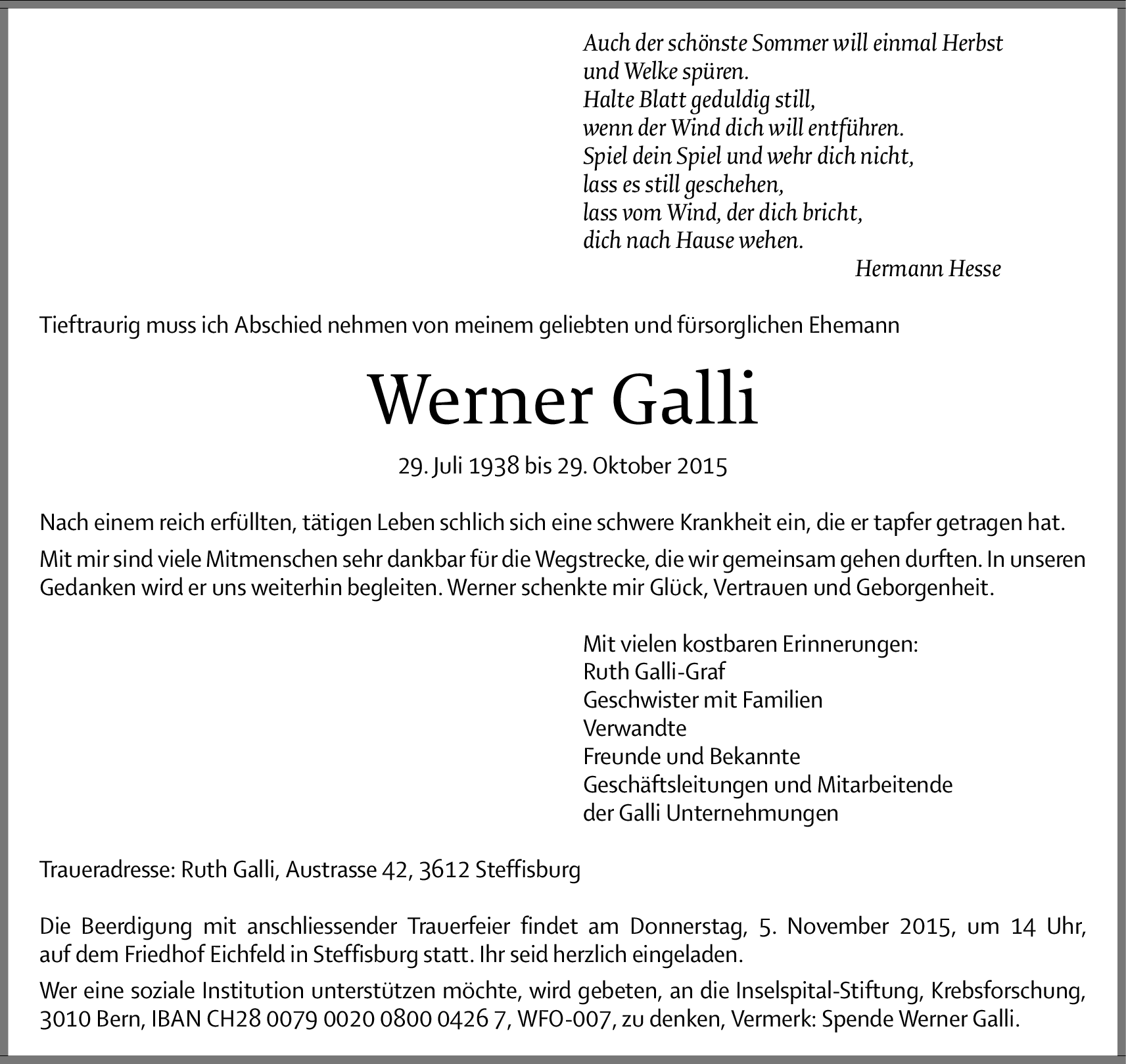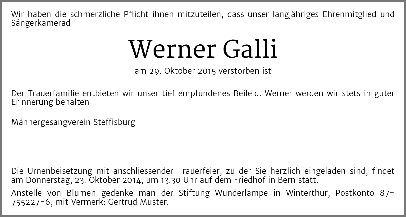 Möchten Sie über neue Todesanzeigen und Kondolenzen für diesen Verstorbenen informiert werden?