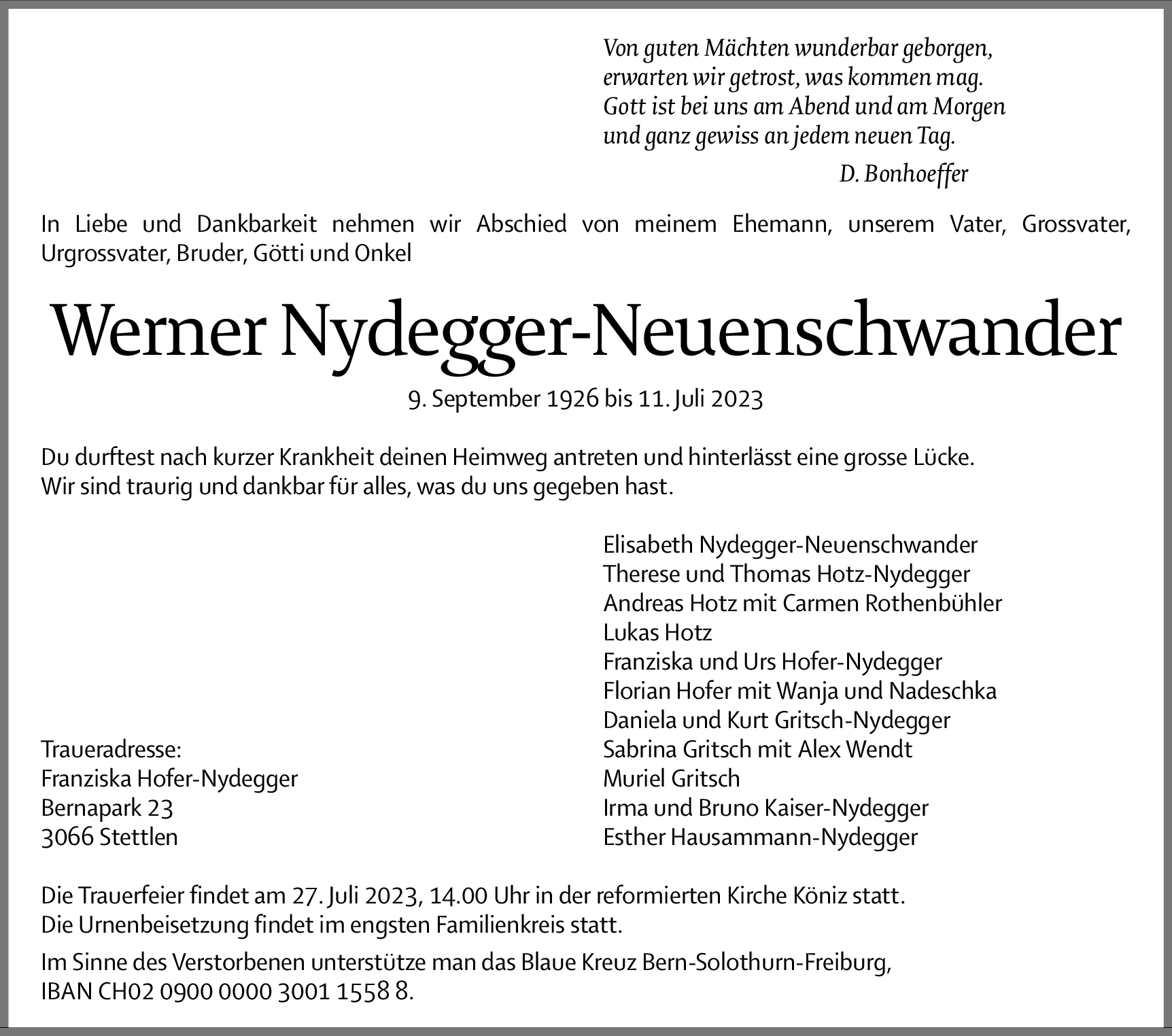 Möchten Sie über neue Todesanzeigen und Kondolenzen für diesen Verstorbenen informiert werden?
