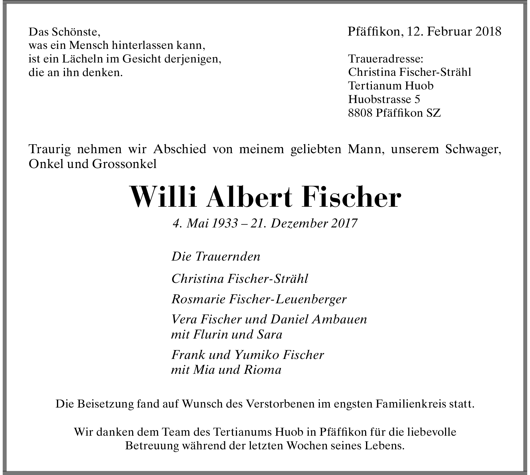 Möchten Sie über neue Todesanzeigen und Kondolenzen für diesen Verstorbenen informiert werden?