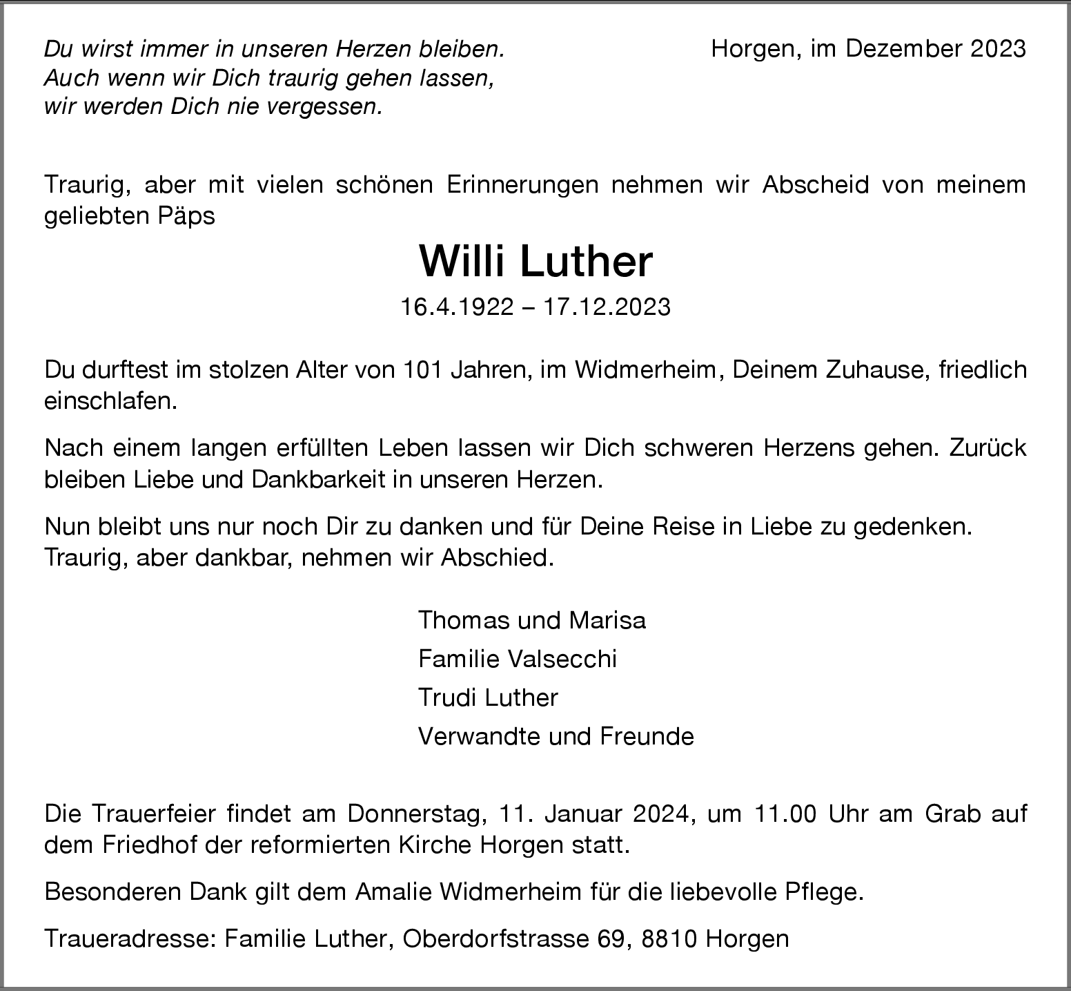 Möchten Sie über neue Todesanzeigen und Kondolenzen für diesen Verstorbenen informiert werden?