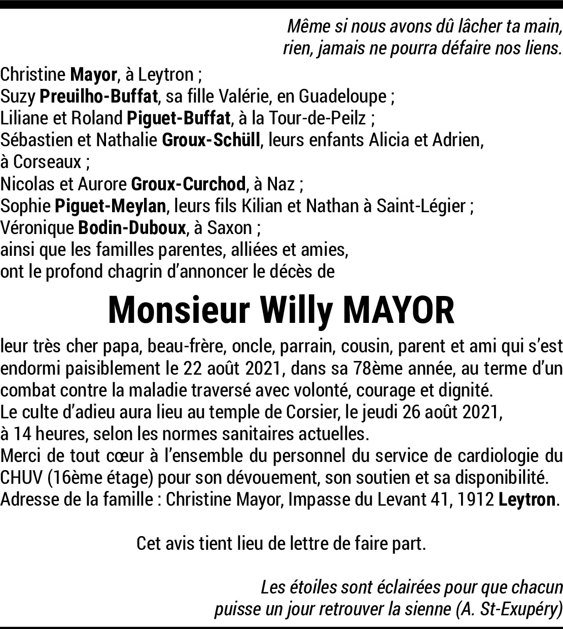 26.08.2021 Melden De tout cœur avec vous en ces instants de pénible séparation. Je vous prie d'accepter mes sincères condoléances. Von Leyvraz-Bruand