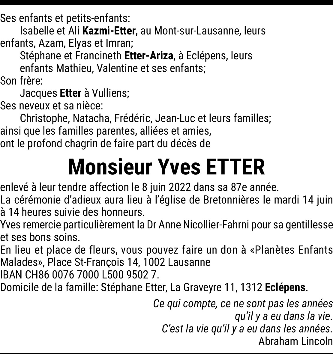 11.06.2022 Melden Chère Isabelle, je t'adresse à toi ainsi qu'à ta famille, toute mes condoléances pour la perte de ton papa. Philippe Leresche Von LERESCHE