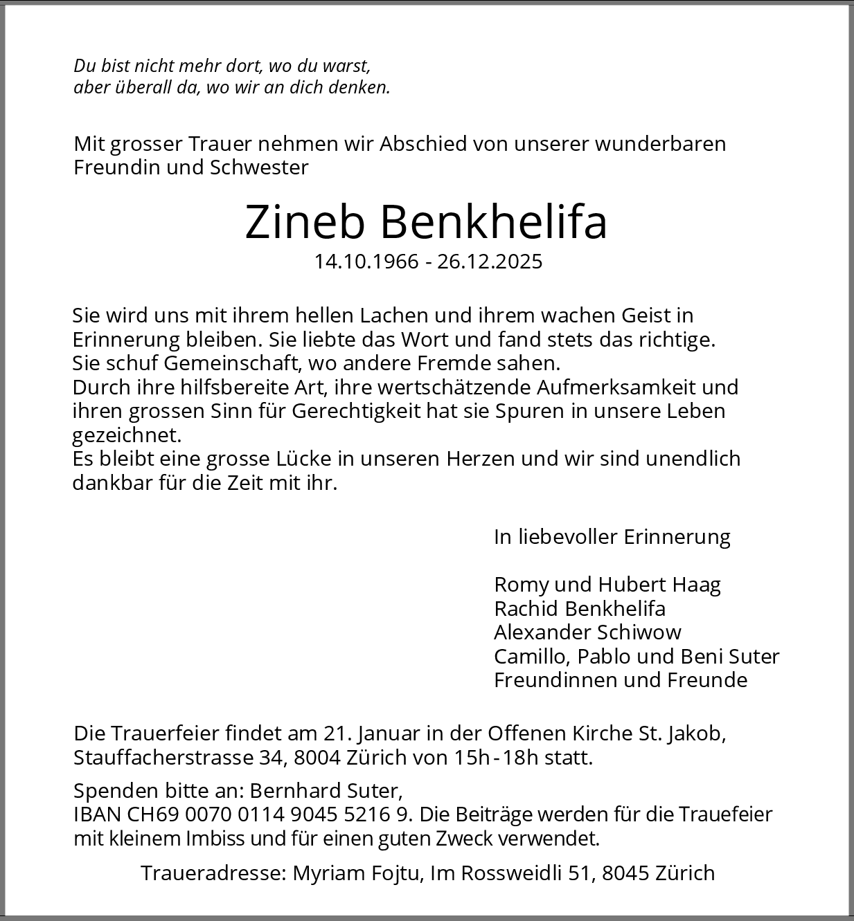 Möchten Sie über neue Todesanzeigen und Kondolenzen für diesen Verstorbenen informiert werden?