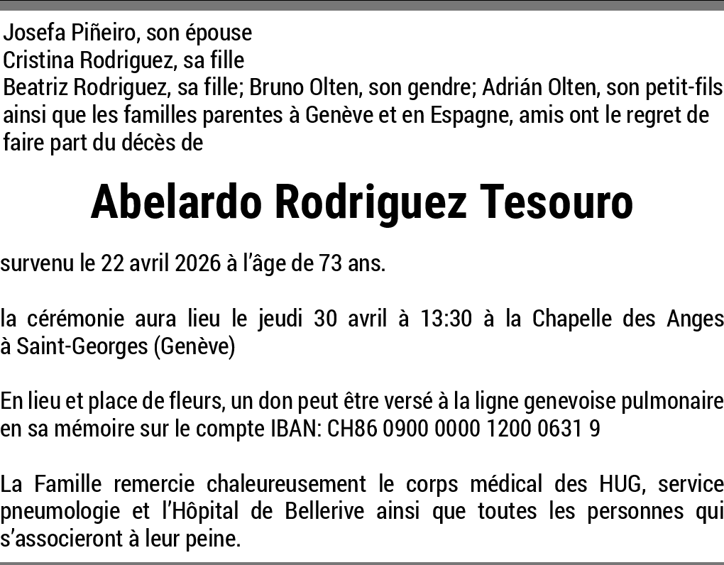 Repôs em paix 29.04.2026 Signaler Que ton repôs soit doux 🥲comme ton couer c’etait bon🙏🌹♥️ De la part de Maria Soares