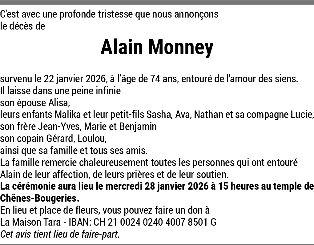 Je t’adresse toutes mes plus sincères et affectueuses condoléances pour Alain… que j’ai rencontré que peu de fois, mais que trouvais fort sympathique… je voulais venir mercredi pour vous soutenir dans ces moments douloureux !!! Mais malheureusement je ne pourrai pas, je serai en pensée avec vous tous… ça m’aurait donné une opportunité de revoir Malika aussi que je n’ai pas revu depuis quelques années…