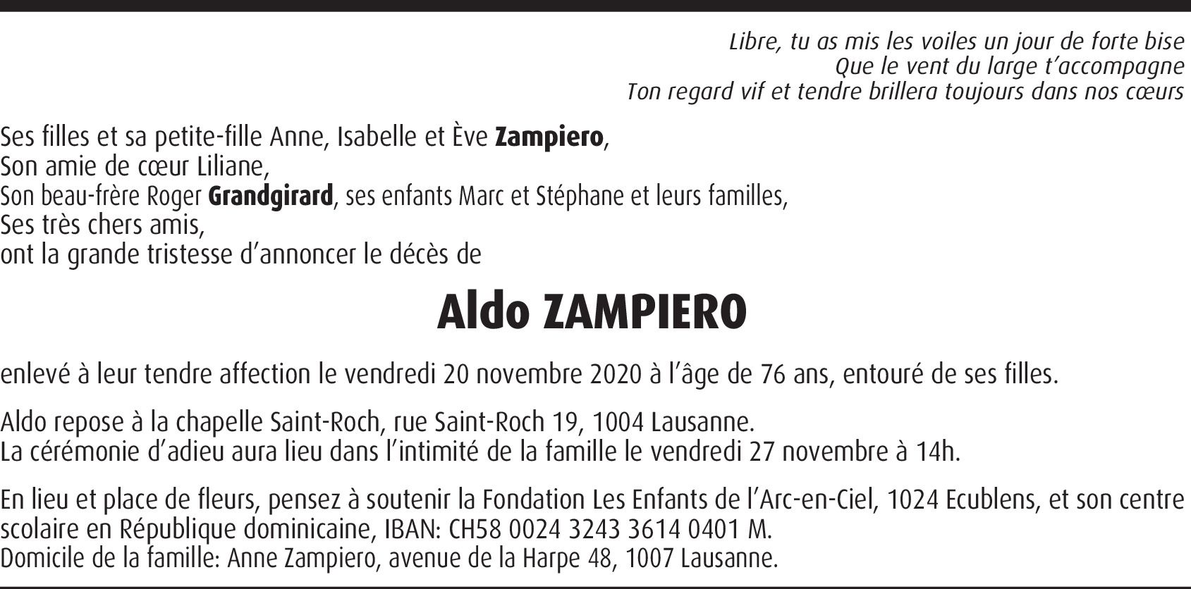 Sachez que je garde un excellent souvenir d'Aldo pour son professionnalisme, sa gentillesse et sa bonne humeur en toute circonstance.