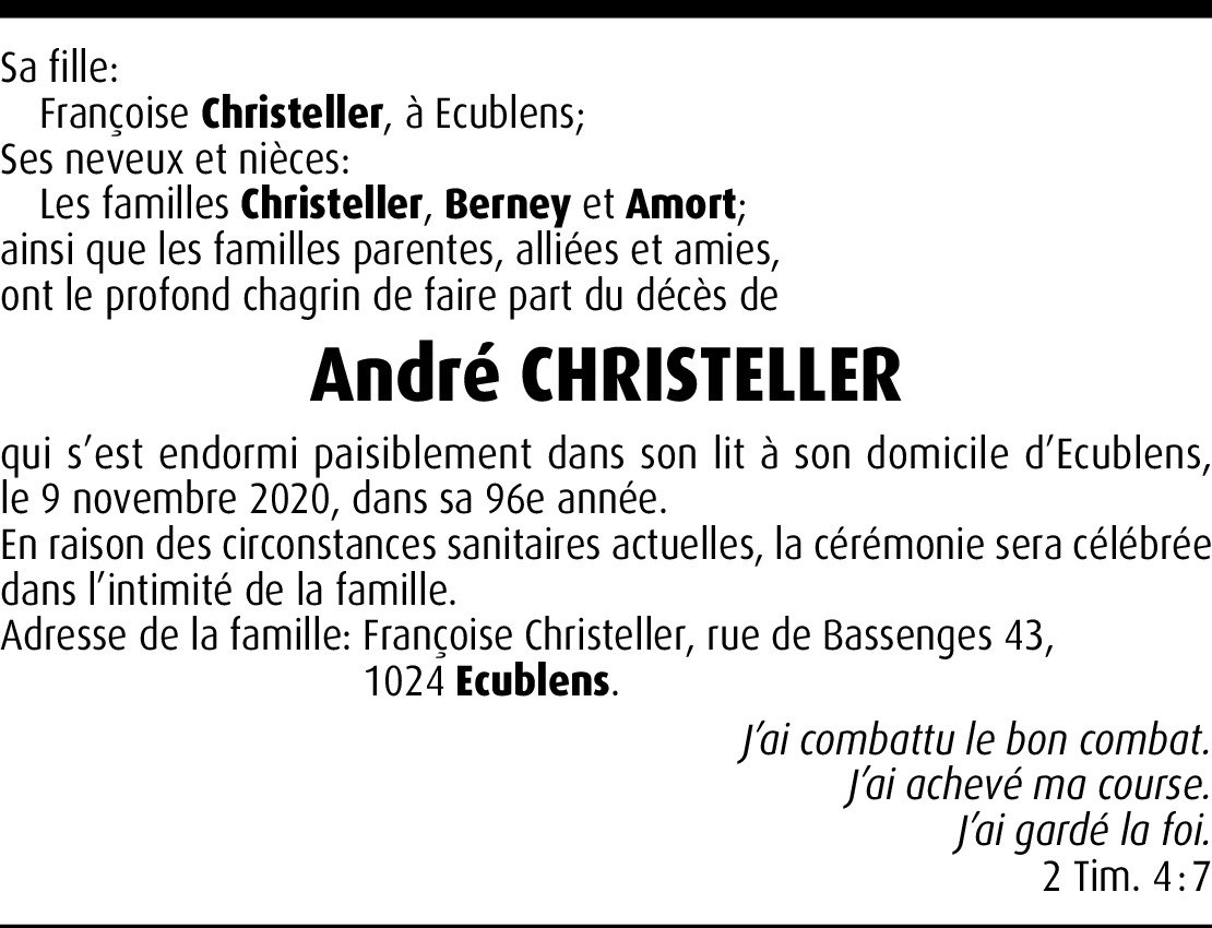 A ma très chère Françoise. C'est avec une profonde tristesse que j'ai appris le déçès de ton cher papa. Je tiens à te dire comment je pense à toi en ces moments douloureux.