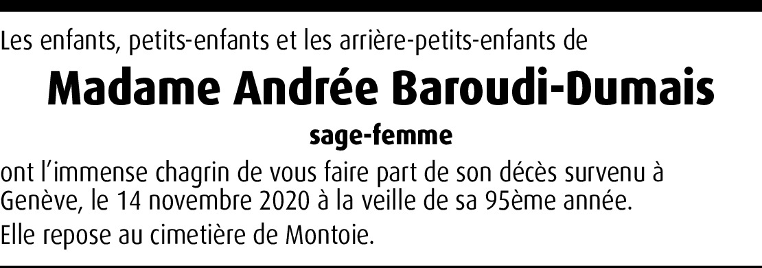 Nous sommes à Dieu et c’est vers Lui que nous retournons. Paix à son âme et mes condoléances à toute sa famille en France, en Suisse, en Syrie et au Qatar. Mamie aura été une merveilleuse fille, sœur, tante, épouse, maman, grand-maman, arrière-grand-maman, sage-femme. Toujours douce, toujours attentionnée, toujours bonne avec tout le monde, sans exception. A titre personnel, je n’oublierai jamais ton regard si tendre, ton sourire si bouleversant, tes câlins si précieux, tes bisous si délicats. Je n’oublierai jamais nos journées à la piscine de Bellerive, les grosses boîtes d’ovomaltine, le Ragusa, la fondue, la raclette, le camembert, les confitures aux fraises maison que tu nous apportais jusqu’à Sharjah ou à Alep. Je me rappelle les deux ans que j’ai vécus chez toi en arrivant de Syrie, les entrecôtes frites que tu me préparais à midi en sortant de l’école, ton couscous royal et familial du dimanche, tes au revoir bis depuis ta fenêtre en direction de la passerelle, nos virées en Normandie pour que tu puisses t’occuper de tes sœurs et gâter tes frères, tes neveux et nièces, notre voyage à deux en Corse en ferry puis en voiture, les religieuses que tu m’apportais à l’internat à Evian, ton amour pour les huîtres, les crabes, les poissons et les cigales de mer, ton émerveillement pour les couleurs automnales, nos ballades au Bois de Sauvabelin pour donner du pain aux canards et aux biches. Je me souviens avec émotion quand tu es devenue arrière-grand-mamie et comme tu cajolais mes enfants en me disant: « profite, profite, ça passe si vite». Je ris en repensant à notre voyage à Disneyland avec mes enfants qui durant deux jours ont pu faire absolument toutes les attractions grâce à ta présence avec nous et qui partagent, depuis, cette astuce avec tous leurs amis: « emmenez votre Mamie, vous passerez devant tout le monde ». Je te vois encore sortant au bout de la rue chercher Maman qui rentrait du travail comme on va chercher une petite fille qui rentre de l’école, nos années vécues à nouveau ensemble cette fois chez Maman où on se retrouvait parfois à 4 générations le temps d’un week-end avec les enfants, tes mots, tes expressions, tes comptines que tu as transmis à Maman, qu’elle m’a transmis et que j’ai transmis à mes enfants, nos danses, nos chansons, nos rires, ton amour du sucré jusqu’à lorgner et partager généreusement avec nous nos gâteaux dans nos assiettes, tous les Noëls fêtés avec toi et pour toi, tous les Ramadans que tu as jeûnés avec nous et pour nous, ta foi pacifiée et pacifiante, ta force, ton courage, ton bon cœur. Et puis tu es et resteras à jamais celle qui m’a fait le plus beau cadeau possible sur Terre, indépassable, imbattable, irremplaçable: ma Maman. Ah Mamie, Ma mie, Mamour, nous te devons tant! Tu as été AMOUR du premier au dernier jour. Que Dieu t’accueille en Son Eden. Adieu, Mamie. À Dieu, Mamie. Shady Ammane