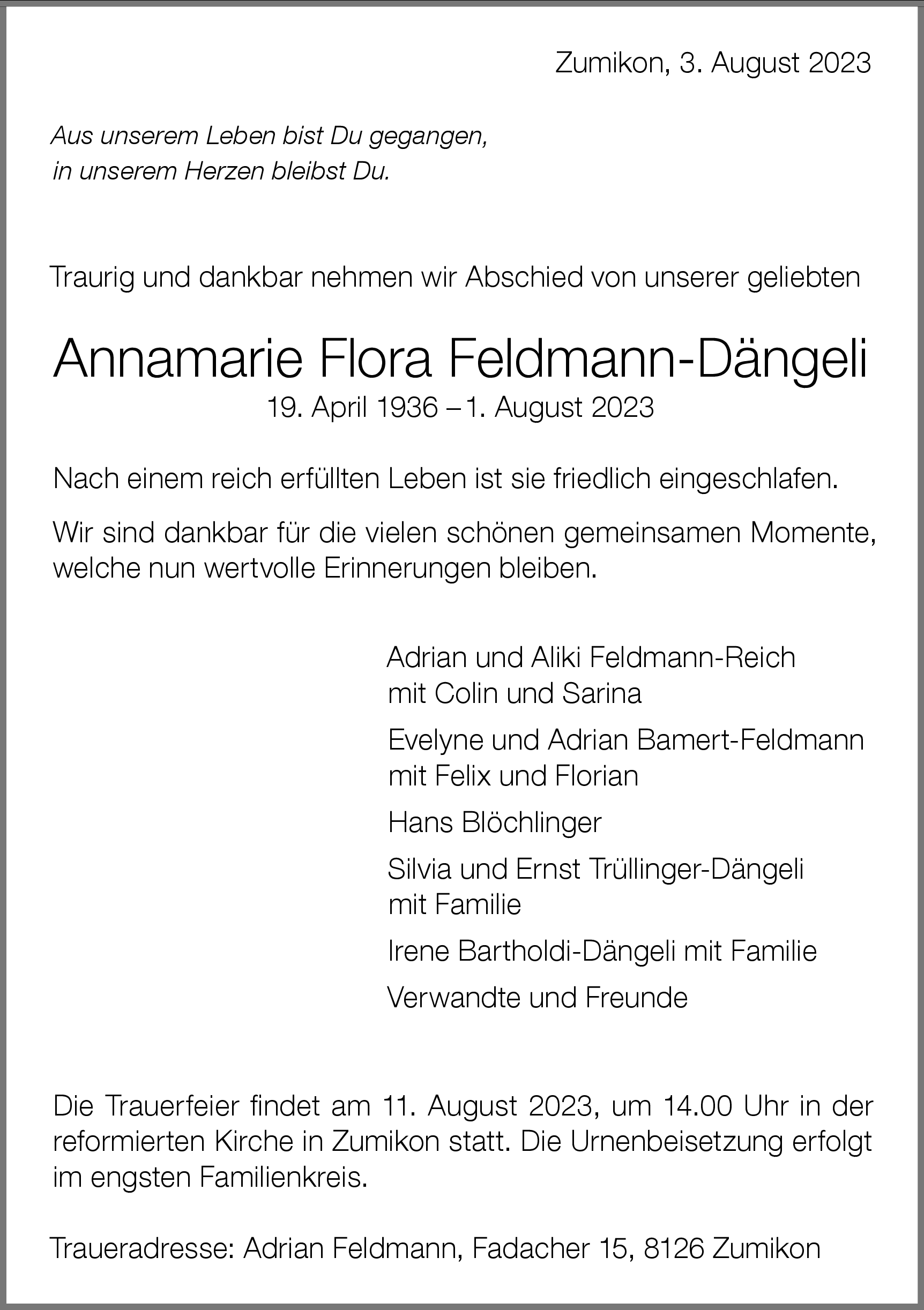 Annamarie Flora Feldmann-Dängeli