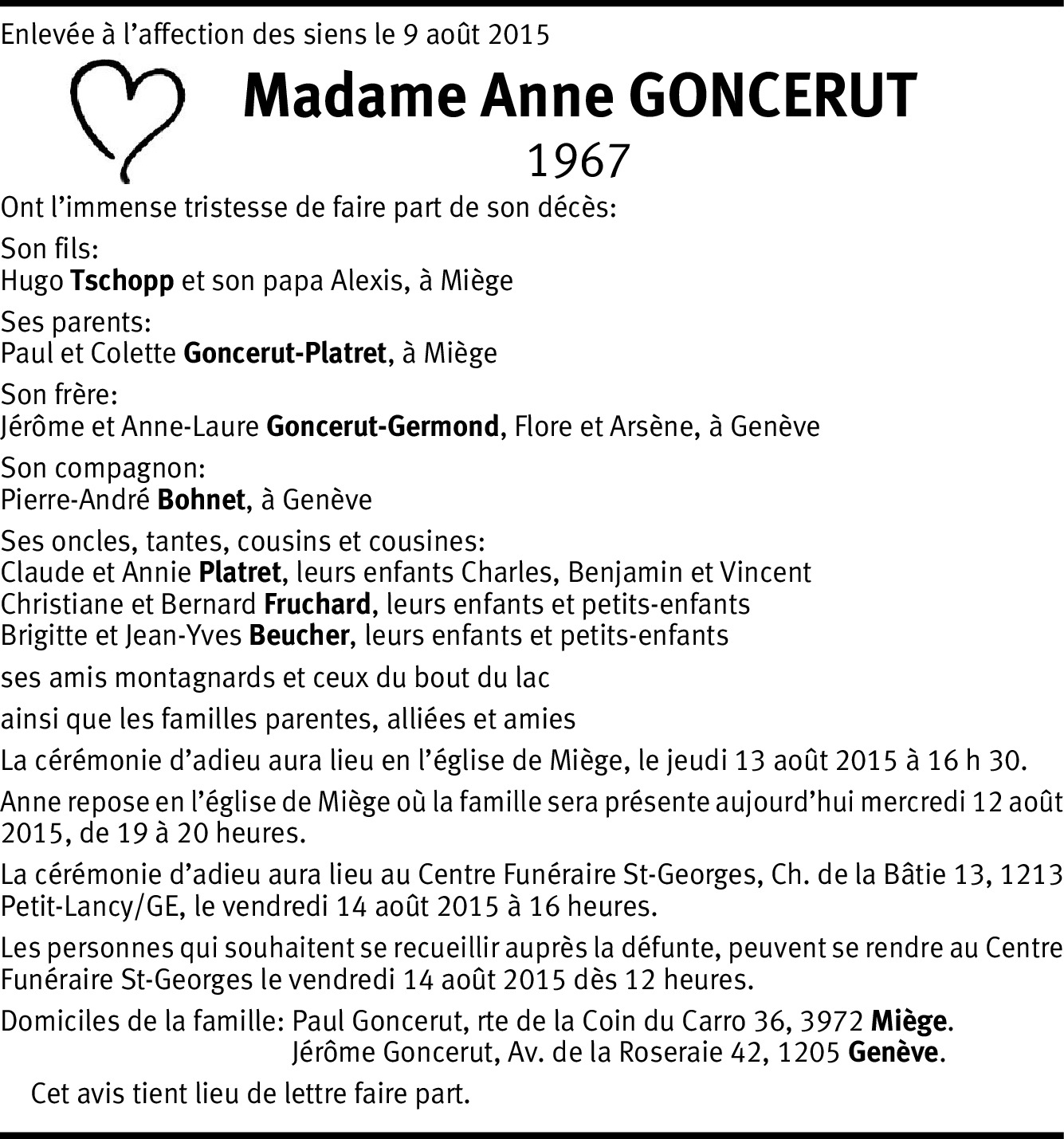 Nos adolescences au C.O. de Cayla. Je me souviens bien de ton talent de nageuse ! ... Été 1987 un soir sur les rives du Léman, nous nous re-croisons et partageons un verre en Cie de 2 jeunes inconnus... Nos vies ont continué chacune de son côté. La tienne, chère Anne, s'est arrêtée un peu tôt, quand même.