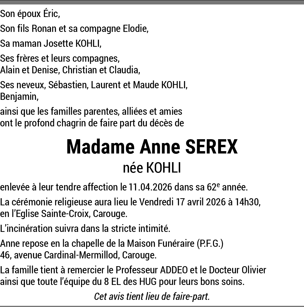C'est avec une grande tristesse que nous avons appris la disparition de Anne. Nos sincères condoleances a toute la famille, les mots nous manquent pour nous exprimer mais sachez que nos pensées sont auprès de vous en ce moment difficile. Nous sommes de tout coeur avec vous dans ce douloureuse épreuve. Anne Restera a jamais dans notre coeur. Beaucoup de courage a Ronan et à Eric. Famille Boodhoo, Roghoo et Cottier