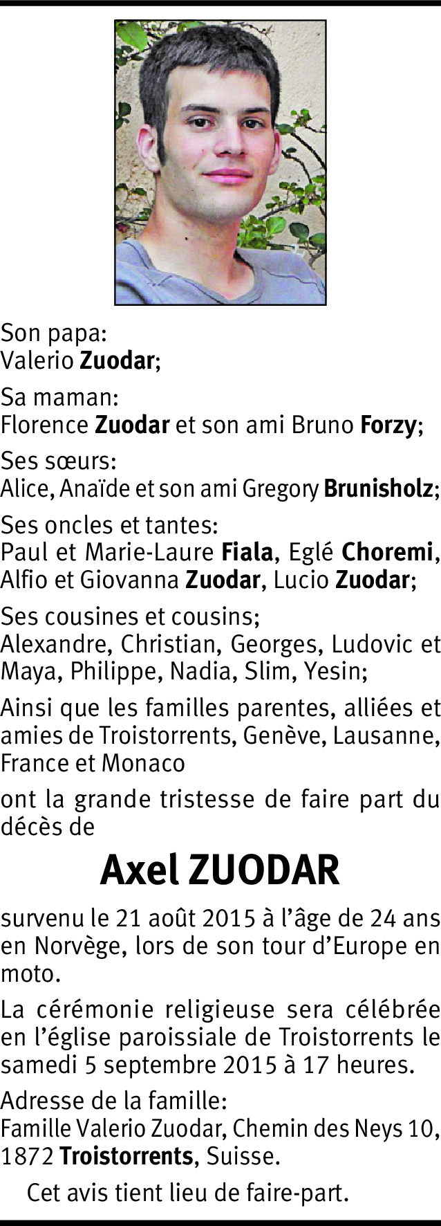 Il y a plus de 4 ans Signaler Dans ces moments de grande souffrance pour votre famille, je pense à vous et vous présente mes plus sincères condoléances. Léo De la part de Leo Laville