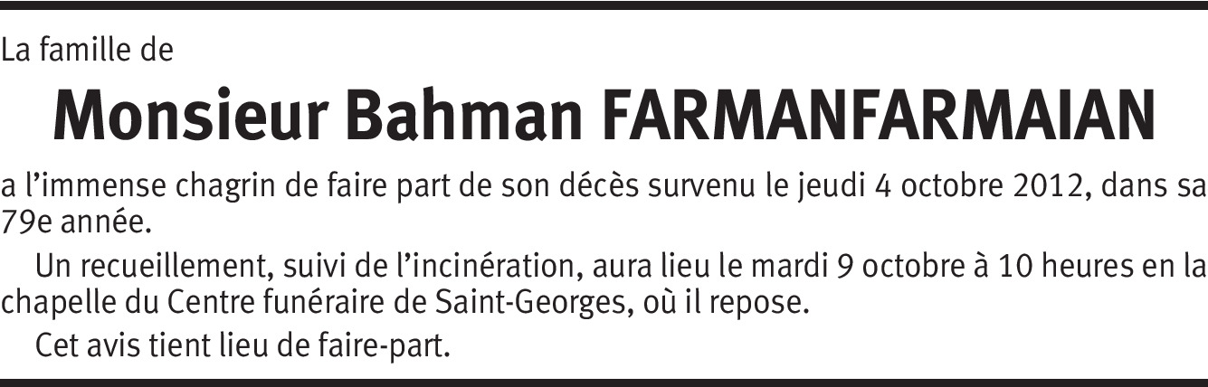 En cet instant de profonde tristesse que je partage avec vous, c'est du fond du coeur que j'adresse toutes mes condoléances à Sahar, Mojdeh, Monir, Luisa et à mes très chers cousins Ezi Khanoum, Bahram, Mehri, Susu ainsi qu'à tous leurs enfants. Ed et moi, vous accompagnons dans votre douleur. Qu'il repose dans la lumière et la paix éternelles. Golnaz