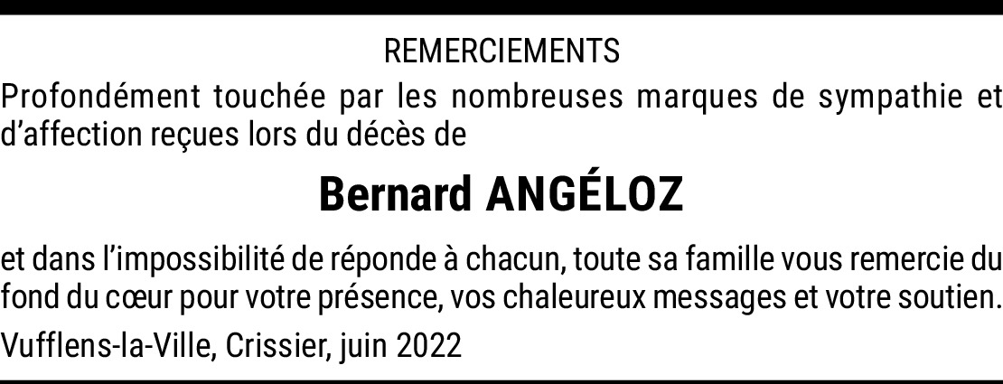Lors de la perte d'un être cher, notre peine est immense. Dans ces moments de douleurs profondes, les gens se rassemblent pour soutenir ceux qui restent. J'espère que cette pensée sincère de sympathie et de compréhension pourra vous être d'un certain réconfort. Mes plus sincères condoléances.