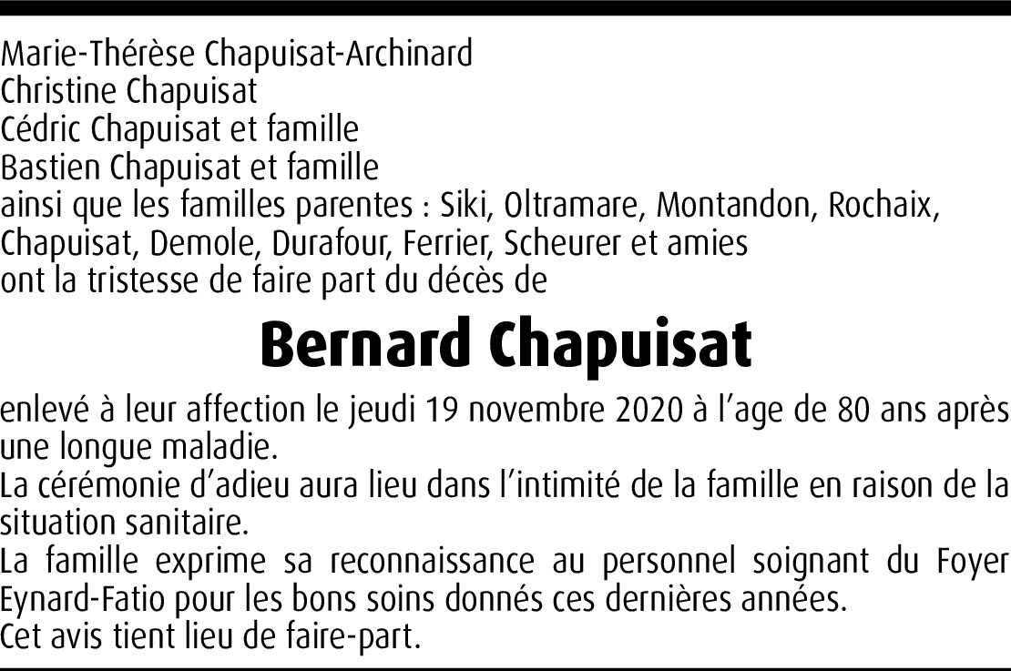 Nous ne t'oublierons pas cher Bernard, notre compagnon d'arme de nos jeunes années. Les repas au foyer resterons pour nous des grands moments d'amitié et de partage. Ton humour et ton optimisme malgré ta maladie étaient
