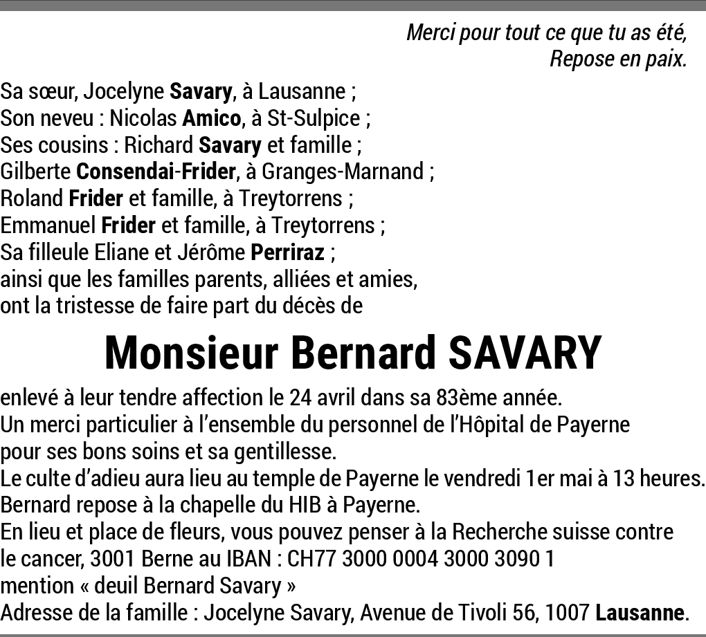 Vous souhaitez rester informé des nouveaux avis et condoléances pour ce défunt ?