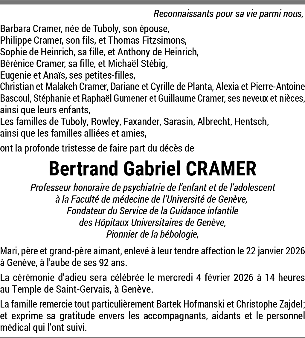 Je dois à Bertrand Cramer la qualité de ma 2ème vie et ma survie.