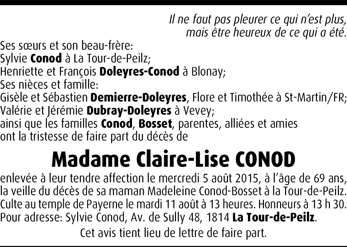 Il y a plus de 4 ans Signaler De tout cœur en pensées avec vous tous! Nos enfants ont été à l'école avec Claire-Lise!Elle savait écouter! On est triste! Courage à vous tous. Christine Gilliéron. De la part de Christine Gilliéron-RougeDe