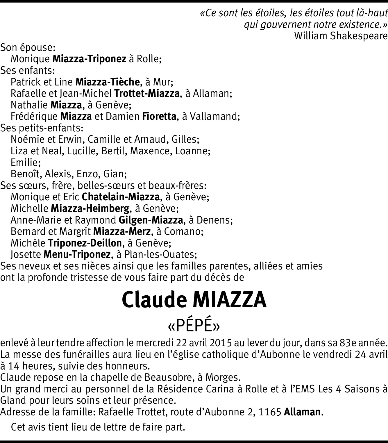 Il y a plus de 4 ans Signaler Mes sincères condoléances. Béatrice Gmünder De la part de Béatrice Gmünder-Dubuis