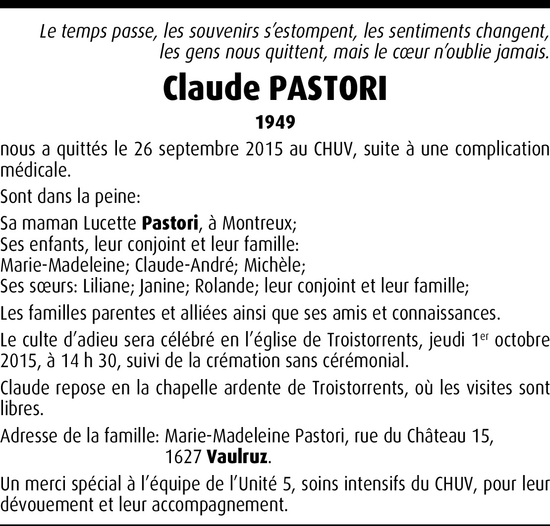 suis affligé par la perte de Claude. Il était un patient fort sympathique, aimable et jovial. Je garderais de lui un souvenir lumineux. J'espère simplement que ma sympathie vous apportera un certain apaisement. Son médecin traitant de Val d'Illiez