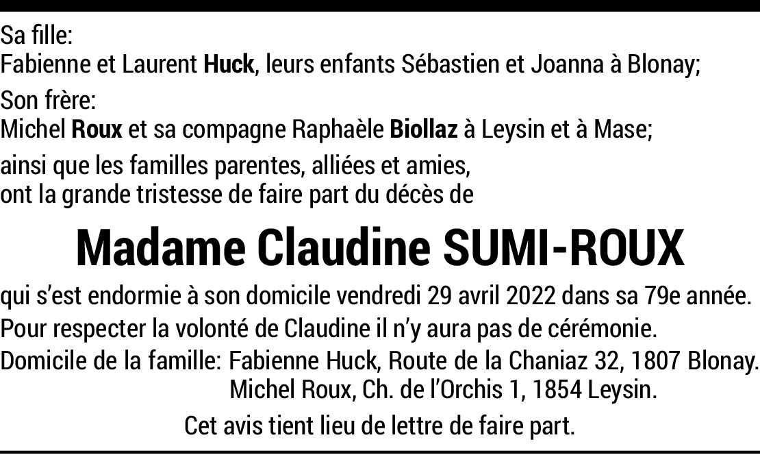 03.05.2022 Report Chère Fabienne, en ce triste jour, de perdre l'être cher à ton coeur, je te présente mes sincères condoléances. Bruno De Carli De la part de De Carli