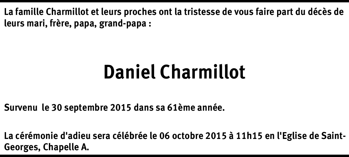 Nous avons connu Daniel et sa famille à notre arrivée aux Avanchets, le 1er avril 1978. Dix années de bon voisinage et d'amitié ont suivi. Les aléas de la vie nous ont éloignés, mais jamais nous n'oublierons les cafés de 10h45 à la boulangerie du quartier, nos longues soirées qui se terminaient - très tard ou fort tôt - avec le stock de cigarettes, nos vacances au camping, la complicité de nos enfants, les parties de pétanque et tant d'autres choses. J'aimais le voir s'énerver quand je lui rappelais nos origines bernoises à tous les deux. Adieu ou au revoir Dany, quelle vilaine dernière farce tu viens de nous faire... Celle-là ne nous fait pas rire. A vous "Romari, Nath et Fafie" nous disons: courage. Les GENTIL