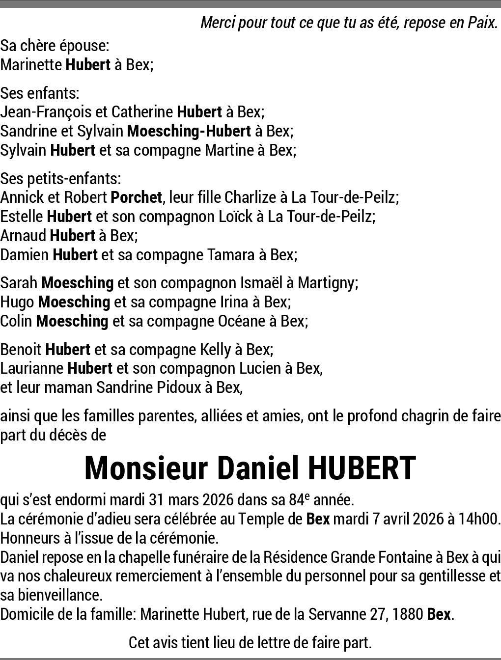 Vous souhaitez rester informé des nouveaux avis et condoléances pour ce défunt ?
