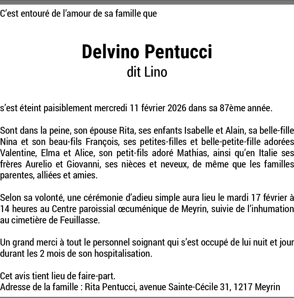 Nous garderons de très bons souvenirs de Lino. Nous pensons bien à vous tous. Ne pouvant être présent le jour des obsèques, nous serons de tout cœur avec vous. Sincères condoléances à toute la famille. On vous embrasse. Laurence, Emmanuel et Madeleine.