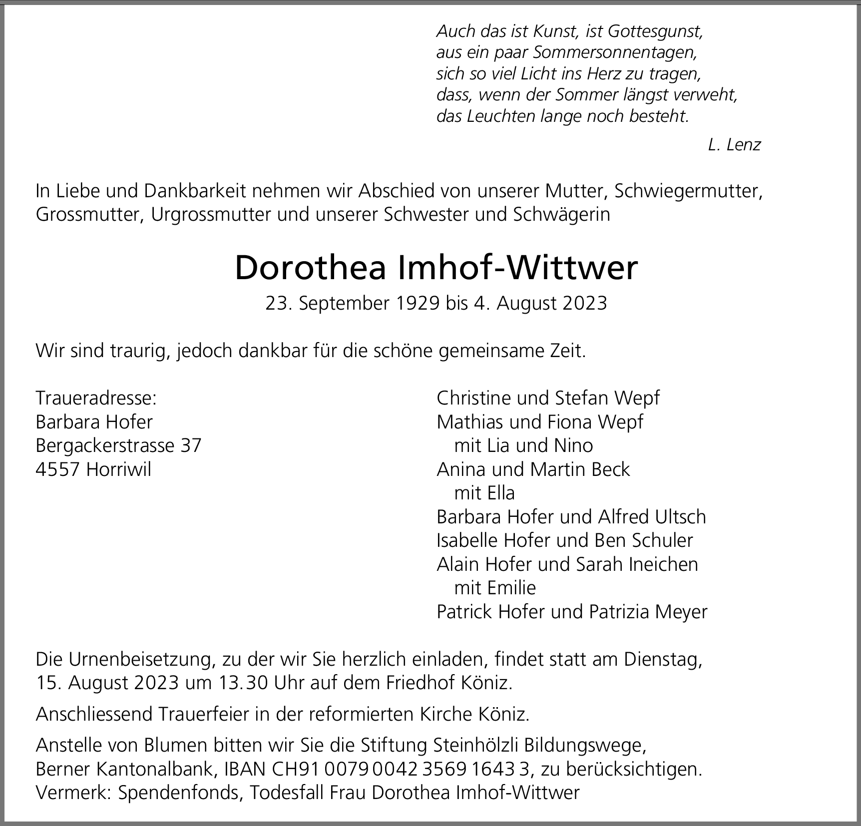 Dorothea Imhof-Wittwer