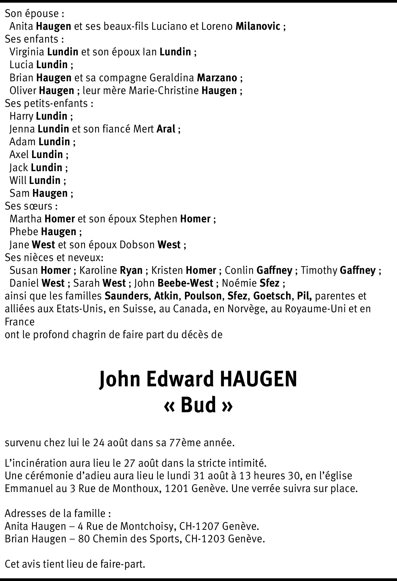 Vous souhaitez rester informé des nouveaux avis et condoléances pour ce défunt ?
