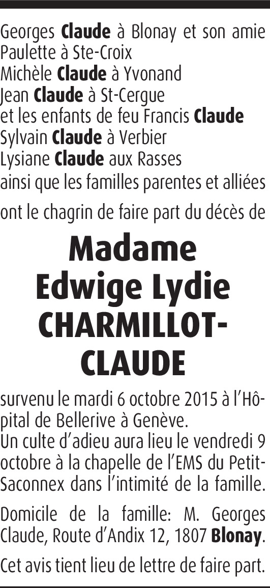Edwige Lydie Charmillot-Claude