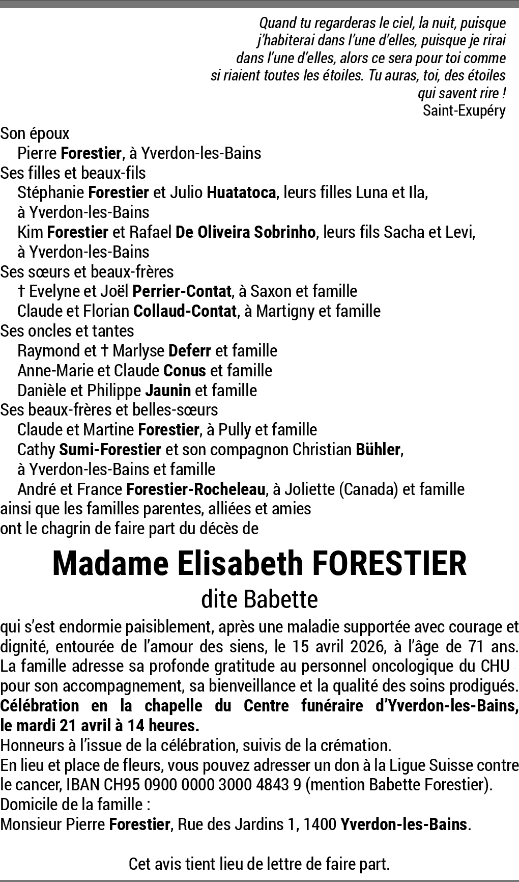 Une Etoile 20.04.2026 Signaler Une nouvelle Etoile est dans le Ciel pour veiller sur vous. Sincères condoléances 💔 De la part de Henriette