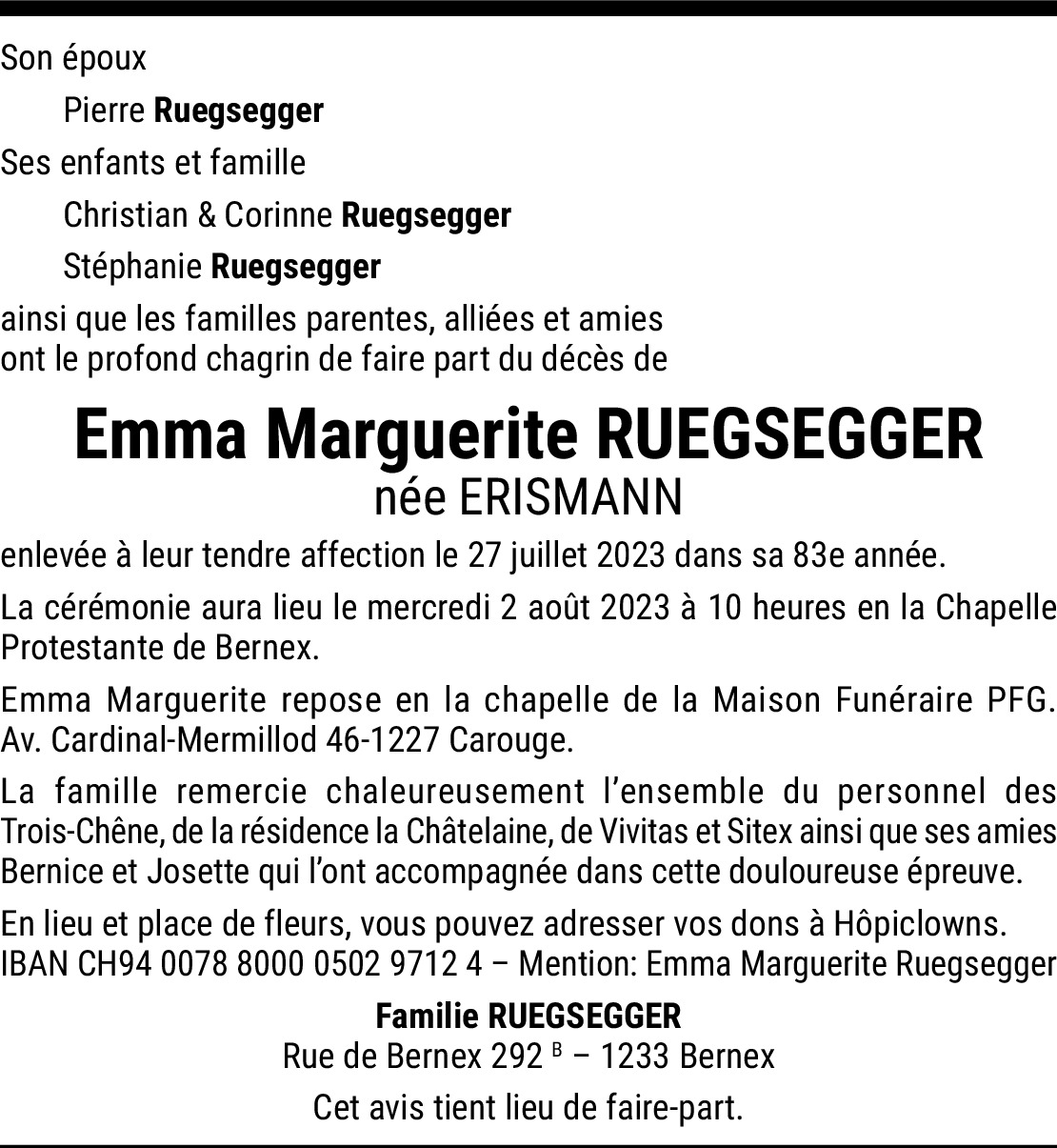 La famille Corbex vous présente ses sincères condoléances