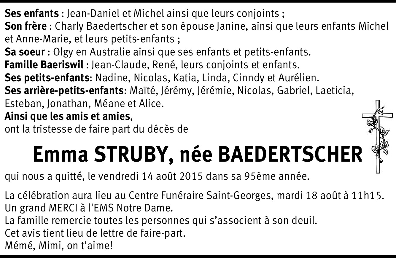 Chère Famille, nous vous faisons part de toutes nos sincères condoléances et de toute notre sympathie. Nous garderons de merveilleux souvenirs de Mimi au café des Amis à Charrot, ainsi qu'à Laconnex, et des beaux moments passés ensemble. Sa gentillesse et sa générosité sont inoubliables. De tout cœur en pensées et prières avec vous.